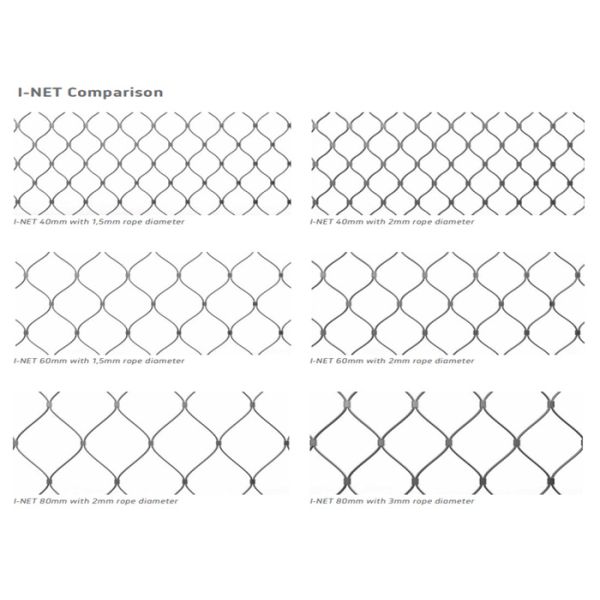 Our cable diameter ranges from 1.0 to 5.0 mm. The aperture size is 20mm to 200 mm and the mesh opening angles include 30°, 60°, 70°, 75°, and others. The standard opening for mesh aperture is set at 60°.